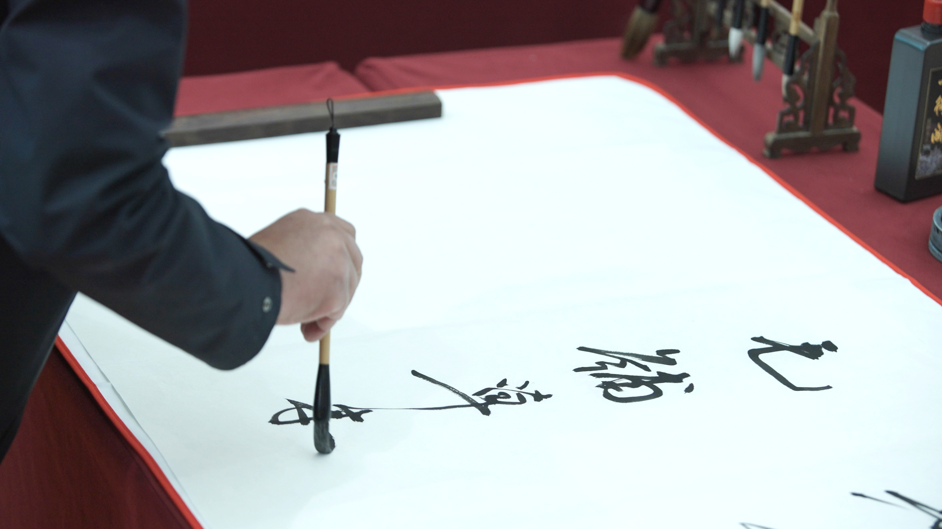提笔写下 “和而不同,草本毛铺”等墨宝留念
