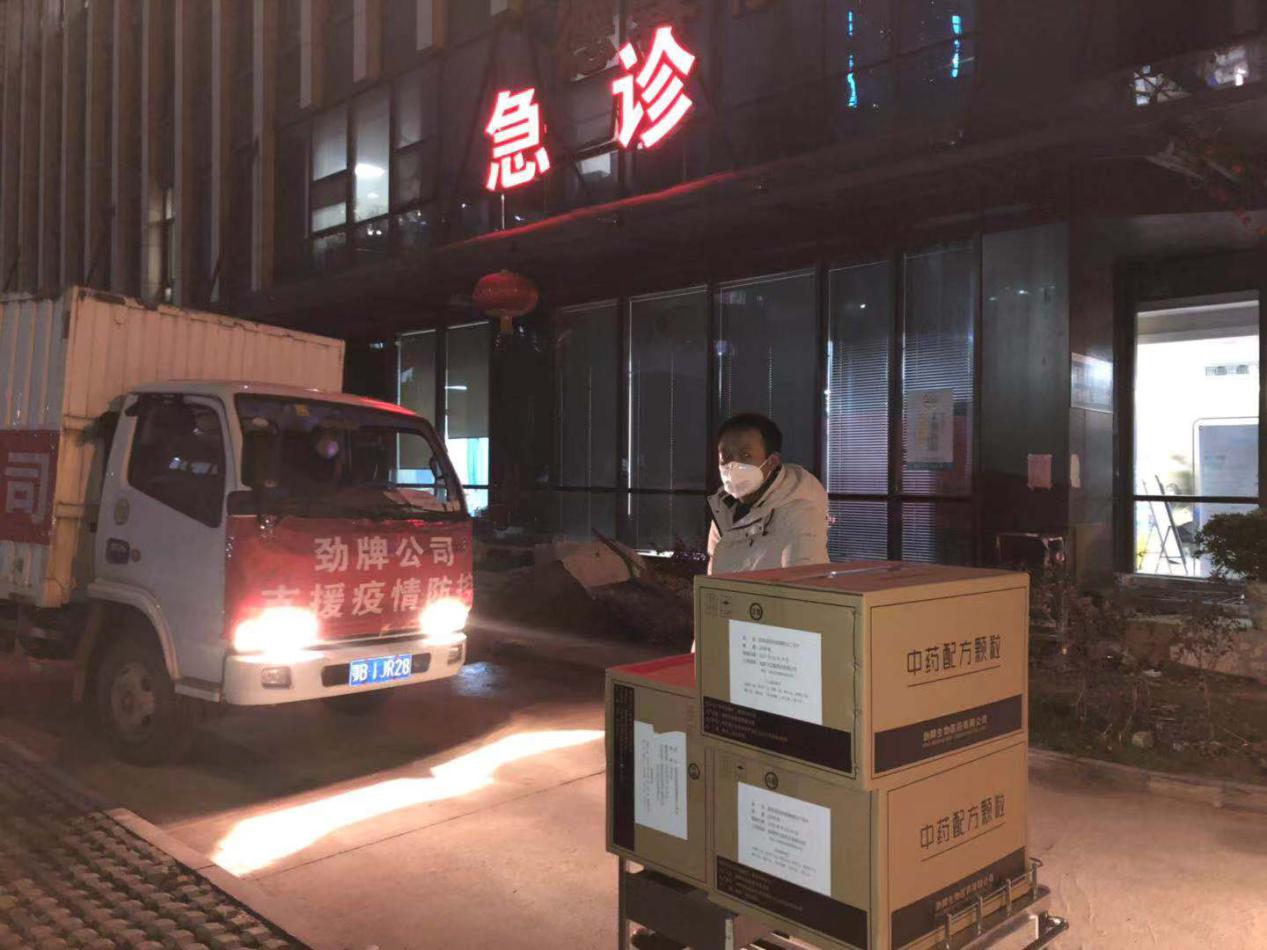 1月27日(正月初三),劲牌将赶制的3.6万服预防新型冠状病毒肺炎中药配方颗粒送达武汉、黄石各指定医院,为一线医护人员送去一份健康守护。